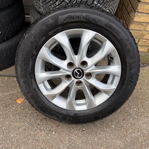 Vinterdæk med flotte originale Mazda fælge. Opbevaret ved Mazda på Viborgvej, og skal hentes der.