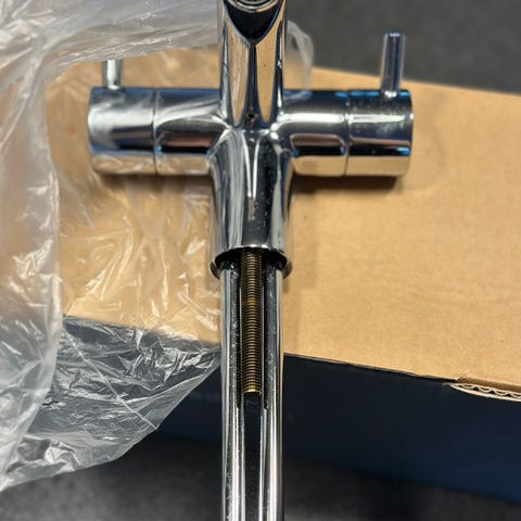Kararmatur/brusearmatur fra Børma. Model Ceraplan. Keramisk cartouche. Med omskifter, så man kan vælge om vandet skal til bruseren eller gennem tuden. Har aldrig været brugt. I original indpakning med forskruninger, rosetter og pakningsskiver. Standard afstand mellem tilgange på 150mm. Tilgange med 3/4 omløbere. Afgang 1/2. https://www.idealstandard.dk/produkter/f1708