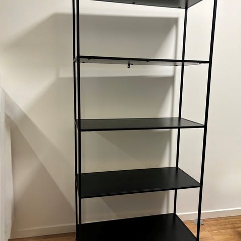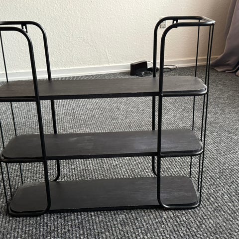 Smuk reol med sort metal stel