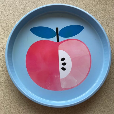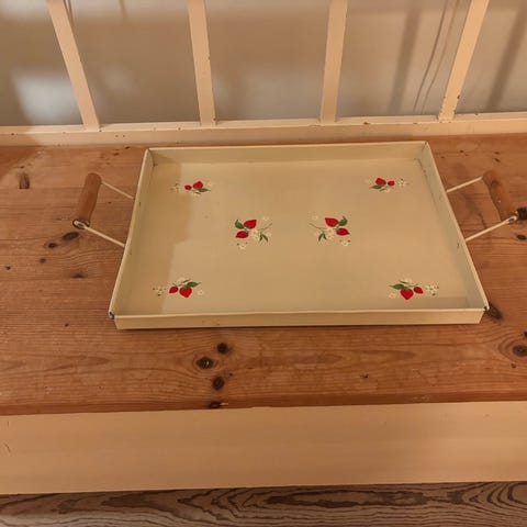 Skøn metalbakke med blomster - Frugter 99,-/stk