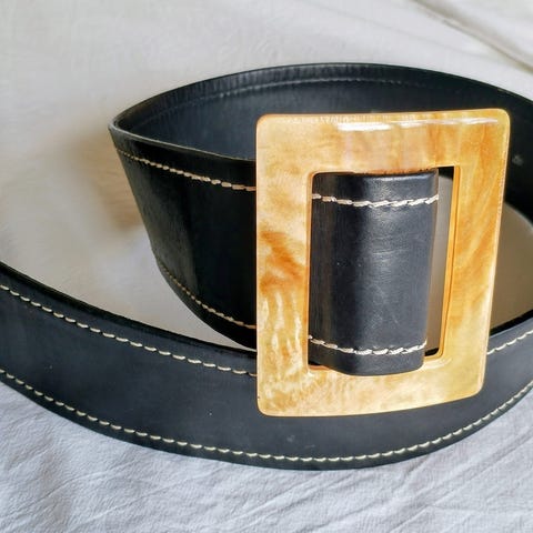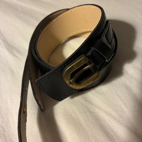 Yves Saint Laurent vintage bælte til unisex i beige farve . Bæltet har en karakteristisk spænde med YSL-logo i guldfarvet metal.