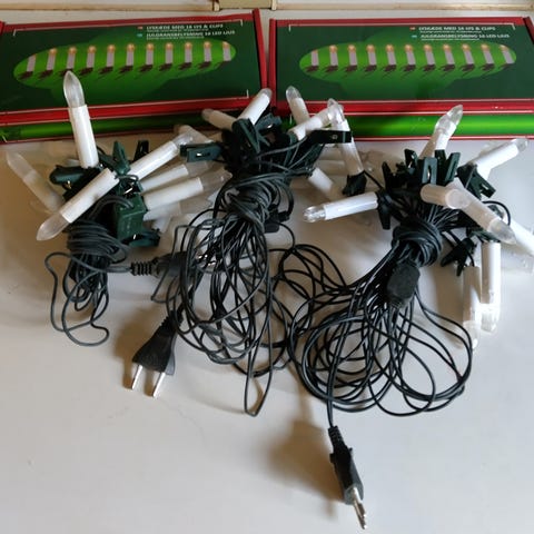 4 forskellige lyskæder , til indendørs brug. se billeder. sælges 20 kr st. eller alle sammen for 50 kr.