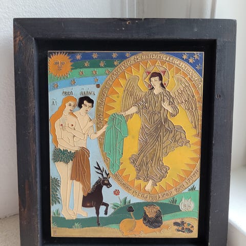 Malet i græsk kloster på træ med ægte guld belægning. Med sertifikat .