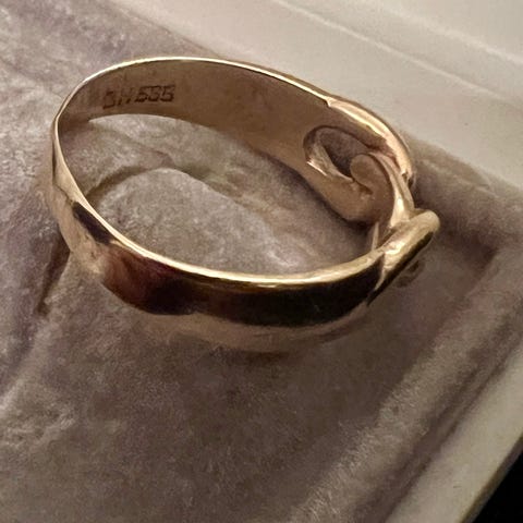 Kraftig ring uden stempel. Syretestet til mellem 8 k og 14 k, ringstr. ca. 60, vægt ca. 8,0g
