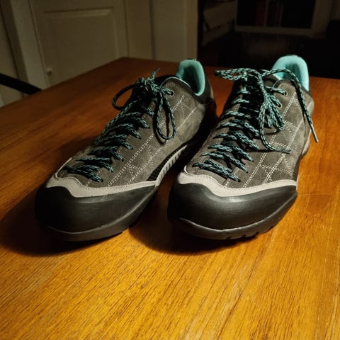 Alsidig og robust sko - både på stierne og i byen. Brugt ganske få gange. Sælges, fordi de ikke passer til min fod. Så gode som nye. Original skotøjsæske medfølger.
