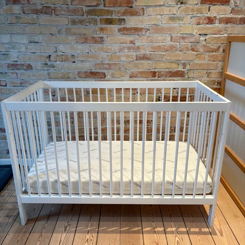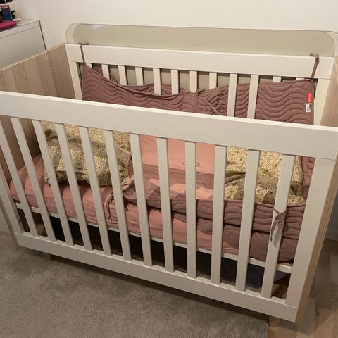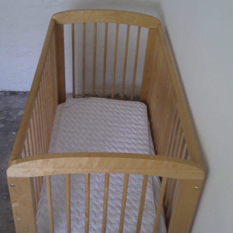Barneseng 60x120. Inkl. ubrugt madras og rullemadras