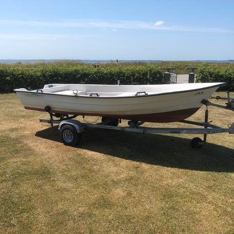 Volvo Penta 5d bådmotorer, 2 kreds køling, diesel. 7,5 hk, starter og dynamo skal renoveres, solid glasfiber jolle med i prisen.