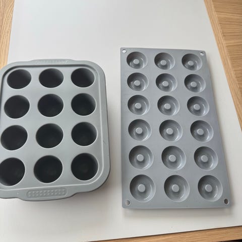 Fra røgfrit hjem. Aldrig brugt. Købt hos Bagebixen. 2 stk bolleforme med plads til 6 boller i hver.