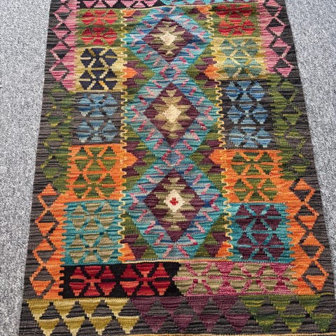 Ny kilim gulvtæppe i størrelse 200 x 300 cm, lavet af bomuld. Aldrig brugt.