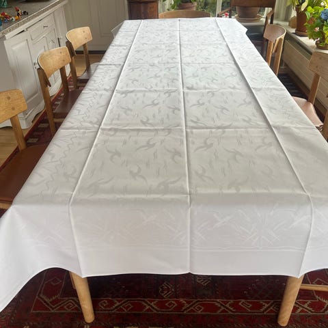 Mågestels dug, 128 x 188cm, har en lille skade se billeder. Sender gerne på købers regning.