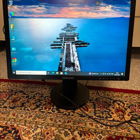 Alt virker perfekt på denne skærm med en solid fod, der er justerbar i højden.