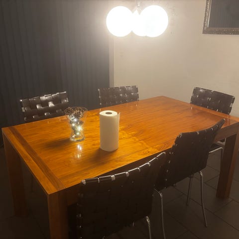 Spisebord med 5 stole sælges. Bord kan blive dobbelt størrelse som på billedet