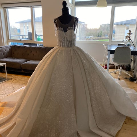 Originally Italian size 38 (UK 6) but bodice adjusted by professional seamstress with eyelets and satin to match dress, to go up to IT 44 (UK 16).