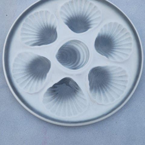 Porcelæn, Østerstallerkener, Sarreguimines. Franske østerstallerkener fra Sarreguimines. 10 stk i alt. Prisen er pr stk.