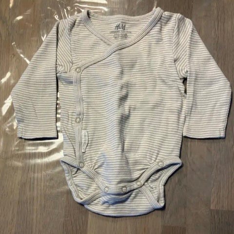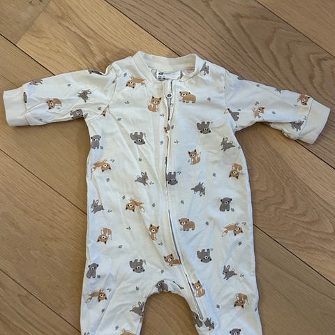 H&M Batman babybody i størrelse 56 til dreng. Bodyen er hvid og lavet af bomuld. Den har kortærmet design med Batman-logo på fronten.