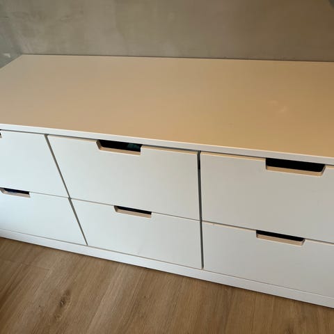 Super fin kommode. Skuffer kører godt. Har en lille skramme - se billede. Kommer fra røgfrit hjem.