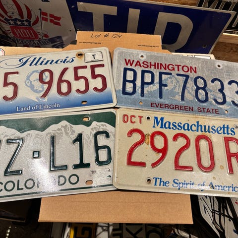 Sæt bestående af 4 nummerplader fra Montana med forskellige designs og numre. Nummerpladerne er i metal og viser forskellige stilarter og årstal. Velegnet til samlere eller dekorative formål.