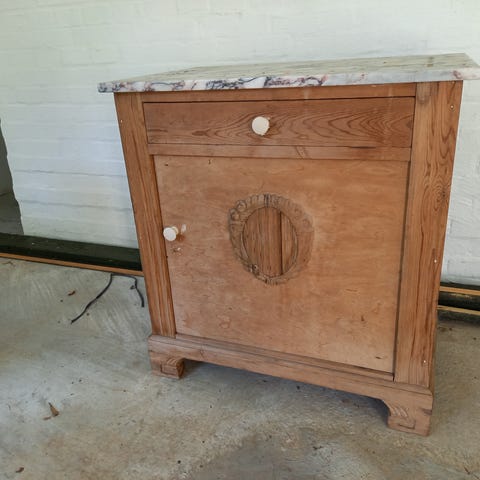Fint lille servantebord med én marmor plade på toppen.