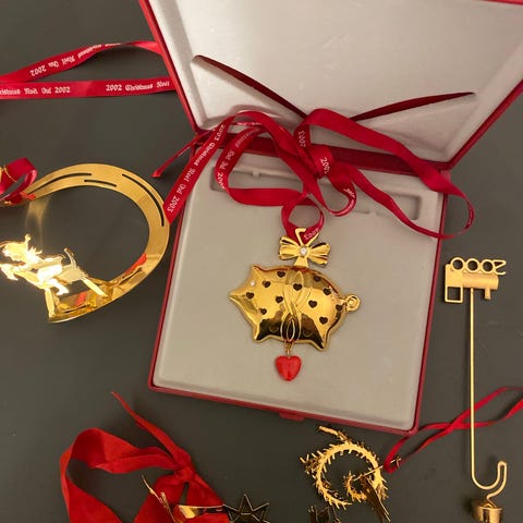 Georg Jensen Julepynt 2010 hjerteformet dekoration i messing med rød bånd. Designet til jul, velegnet som julepynt.