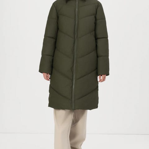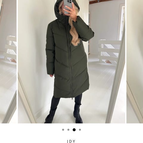 Grågrøn vinterjakke som kun er blevet brugt 2-3 gange. Ervandafvisende og lidt puffet i det. Jakken har to lommer og en stor hætte.