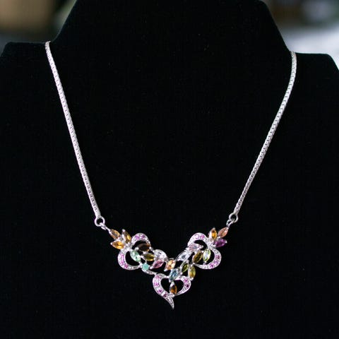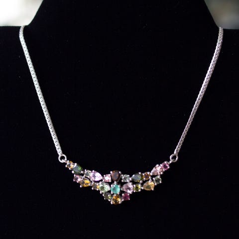 Halssmykke af sterlingsølv med 14 karat hvidguldsbelægning og facetslebne sten af citrin, amethyst, peridot, lys blå topaz og zirkon (hvidguldsbelægningen beskytter smykket mod oxydering).