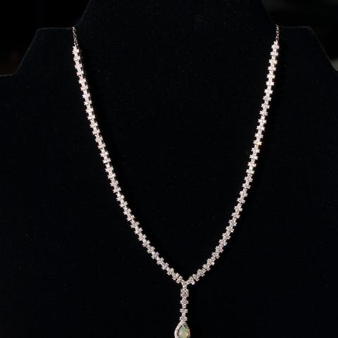 Halssmykke af hvidguldsbelagt sterlingsølv med facetslebne sten