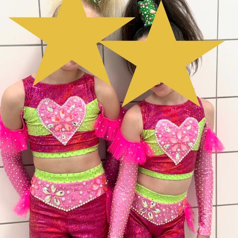 Disco top, begynder og rekruttering i størrelse ca. 134. Indeholder flere dele i farverne turkis og pink med forskellige teksturer og detaljer. Medfølger: hårtårn, 4 små armbånd, 2 armbånd med frynser, halsbånd og 2 hårbånd.