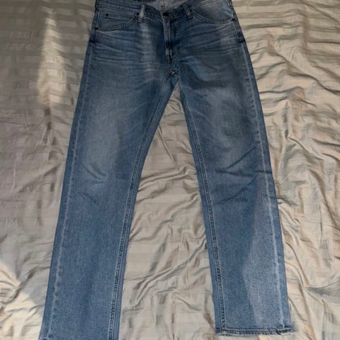 Lee Austin herrejeans i blå denim. Størrelse M med taljemål W29. Fremstillet i denimmateriale.