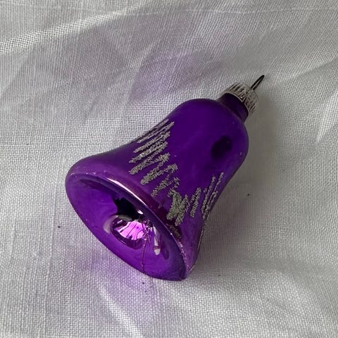 Juleklokke i mundblæst glas og hånddekoreret med lyserød glimmer -