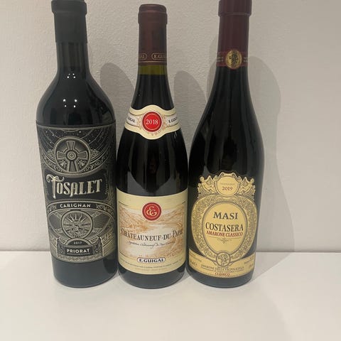 6 stk spændende rødvine til julemaden. Opbevaret i tempereret vinrum.