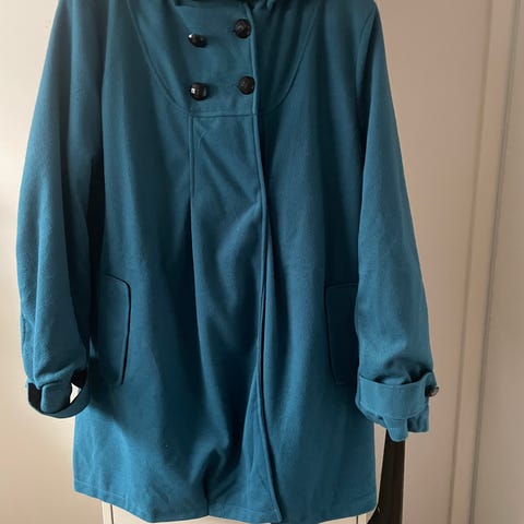 Jakken er tæt siddende. Den har elastik ved håndled, to lommer og velfungerende lynlås.