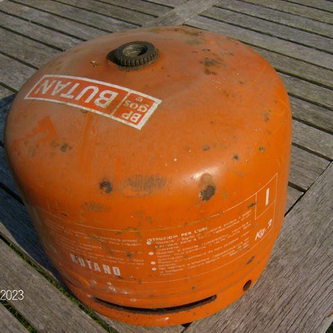 Sælger denne stålflaske ombyttet og fyldt, som ny. Plumberet.