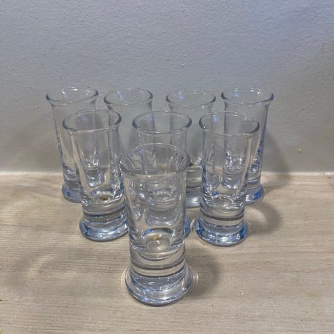 8 snapseglas, uden bly, aldrig maskinopvasket, sendes ej, sælges samlet, pris er pr stk, ikke til forhandling