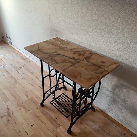 Symaskinestel med marmorplade i hvid Carrara marmor
