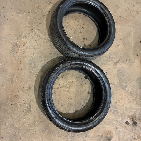 Sælger et sæt meget pæne kvalitetsdæk. De står nye med ensartet slid og ingen skader.
