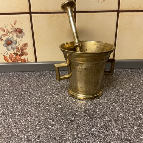 Messing morter med pisten og årstal, 1977 og 1979, Årets fødselsdags/-eller julegave
