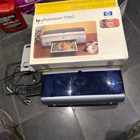 HP Photosmart 8250 multifunktionsprinter med farveprint og indbygget display. Velegnet til hjemme- eller kontorbrug til udskrivning, scanning og kopiering. Fejler intet.