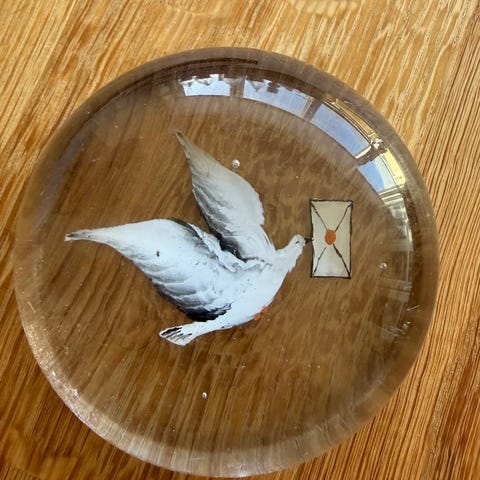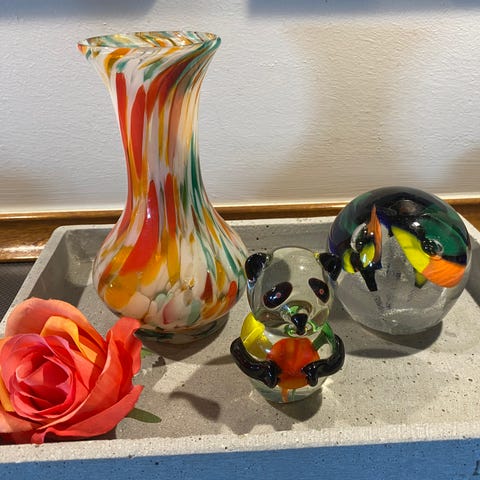 Brevpresser formet som panda. Gaennemsigtigt glas med farvede blomster