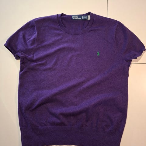 Flot rød og hvid Ralph Lauren strik med trekvart ærmer og guldfarvet knapper i meget god stand