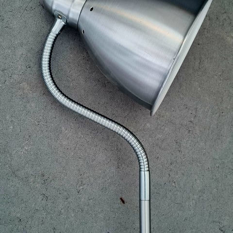 Lampen har et minimalistisk, industrielt udtryk og passer godt til et moderne hjem eller et kontormiljø.