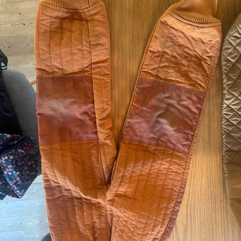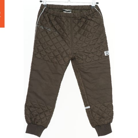 Mikk-Line termobukser dreng bukser i størrelse 86, farve blå, lavet af akryl materiale. Bukserne har elastik i taljen og ribkant ved anklerne, med quiltet mønster og stjernedetaljer på knæene.