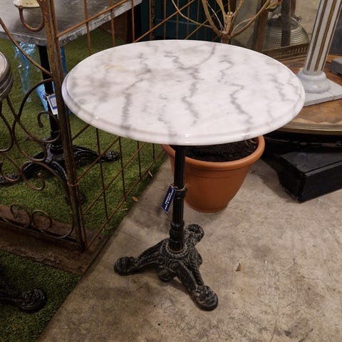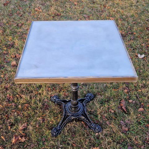 Art deco fransk cafebord fra 1930'erne med stel af støbejern og bordplade i jern.