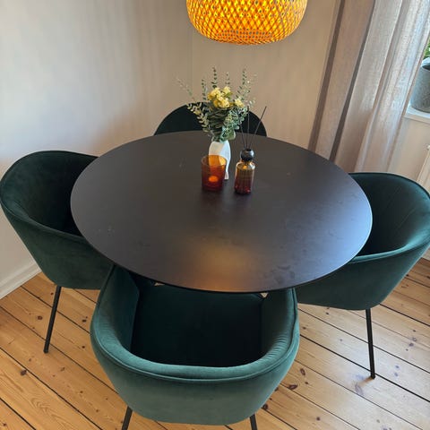 Fint brugt bord og stole. Stolene skal vaskes. De er nemme at rengøre..