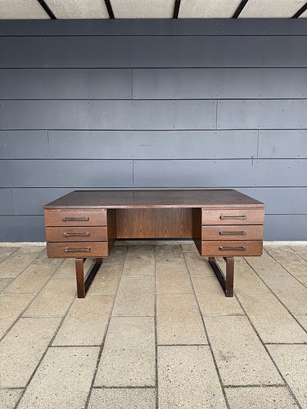 Fremstår i ok stand. Har en meget lille tynd revne på toppen af det ene forben, uden betydning (se billede) en smule ujævn finer bag på ryglænet (se billede)