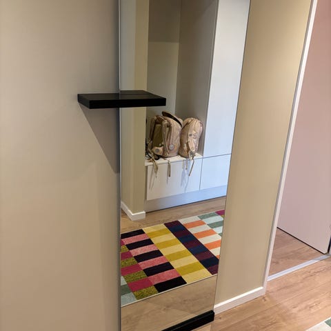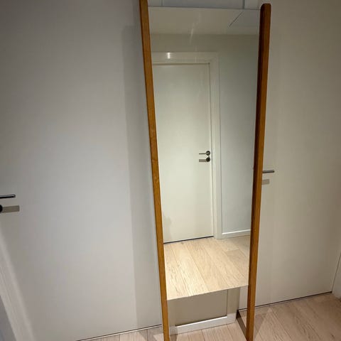 Shift gulvspejl fra Bolia med i sortbejset eg i rigtig god stand og ingen synlige brugsspor. Spejlet kan monteres med eller uden hylde, samt med eller uden knagerække.