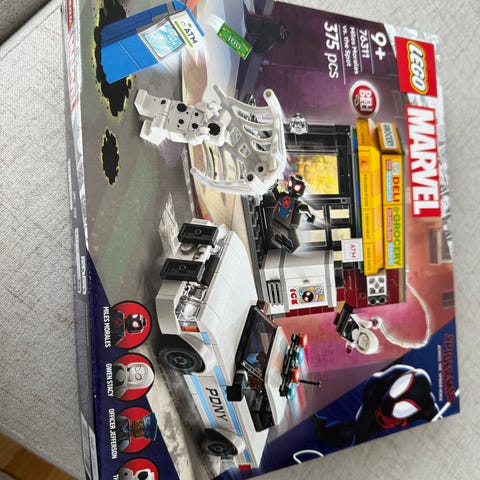 Uåbnet men kassen er ramboneret - det er indholdet dog ikke. LEGO Marvel Spider-Man legetøjssæt med flere figurer og køretøjer. Sættet indeholder Spider-Man og andre karakterer fra Marvel-universet, samt tilbehør og køretøjer. Egnet til børn fra 6 år og opefter.