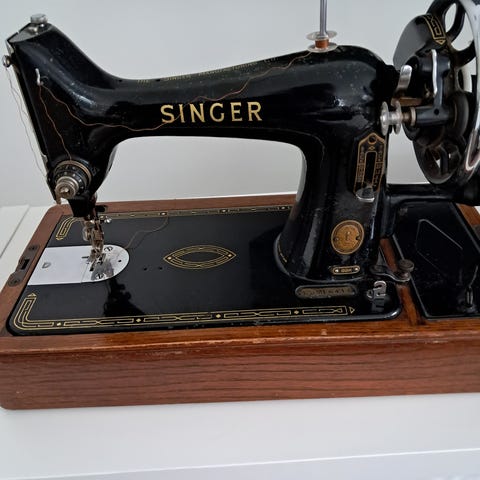 Singer symaskine til børn 8-12 år. Den virker som den skal også med pedal. Den er bare blevet for lille til min datter.