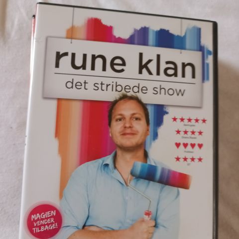 Rune Klan DVD 2-pack indeholdende 4 shows: 'Tre-i-en' med en spilletid på 120 minutter, udgivet i 2003, og 'Går Large' med en spilletid på 171 minutter, udgivet i 2007.
