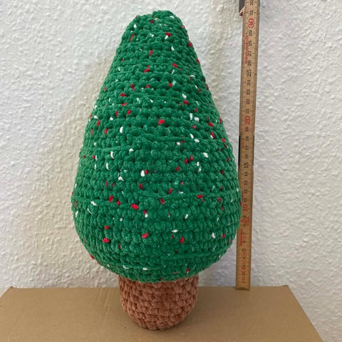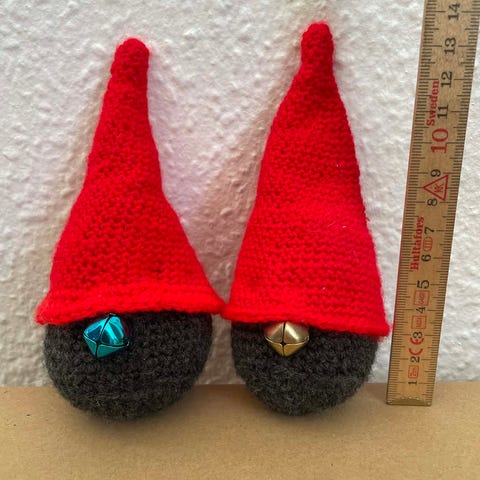 Hæklet i bomuldsgarn, ca 24 cm høj.
