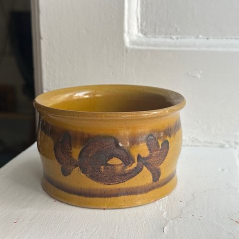 Gammel glaseret i syltekrukke smuk chokoladebrun glasur.